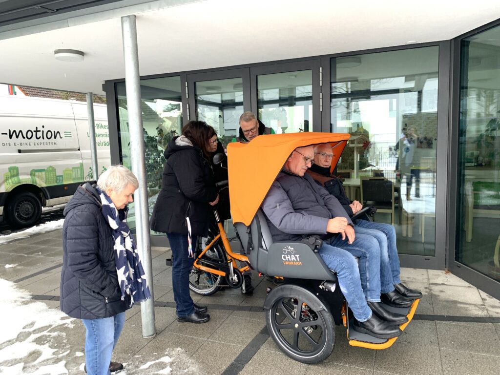 Am 13.01. war es soweit und das lange Warten wurde belohnt, denn unser neuestes Familienmitglied ist im Wohnpark Schieblerstraße eingezogen: die von der Aktion Mensch geförderte, brandneue E-Rikscha!